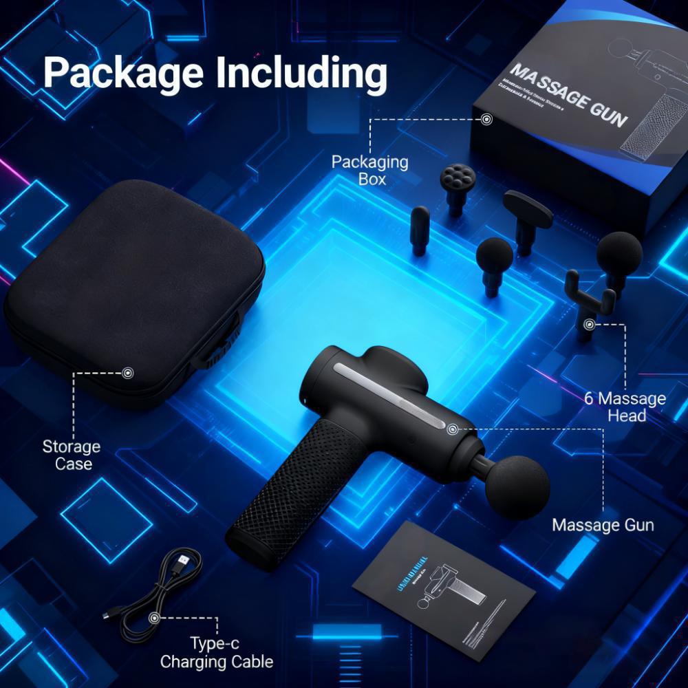 Percussion Massage Gun with 6 Replaceable Heads for Deep Tissue Relief