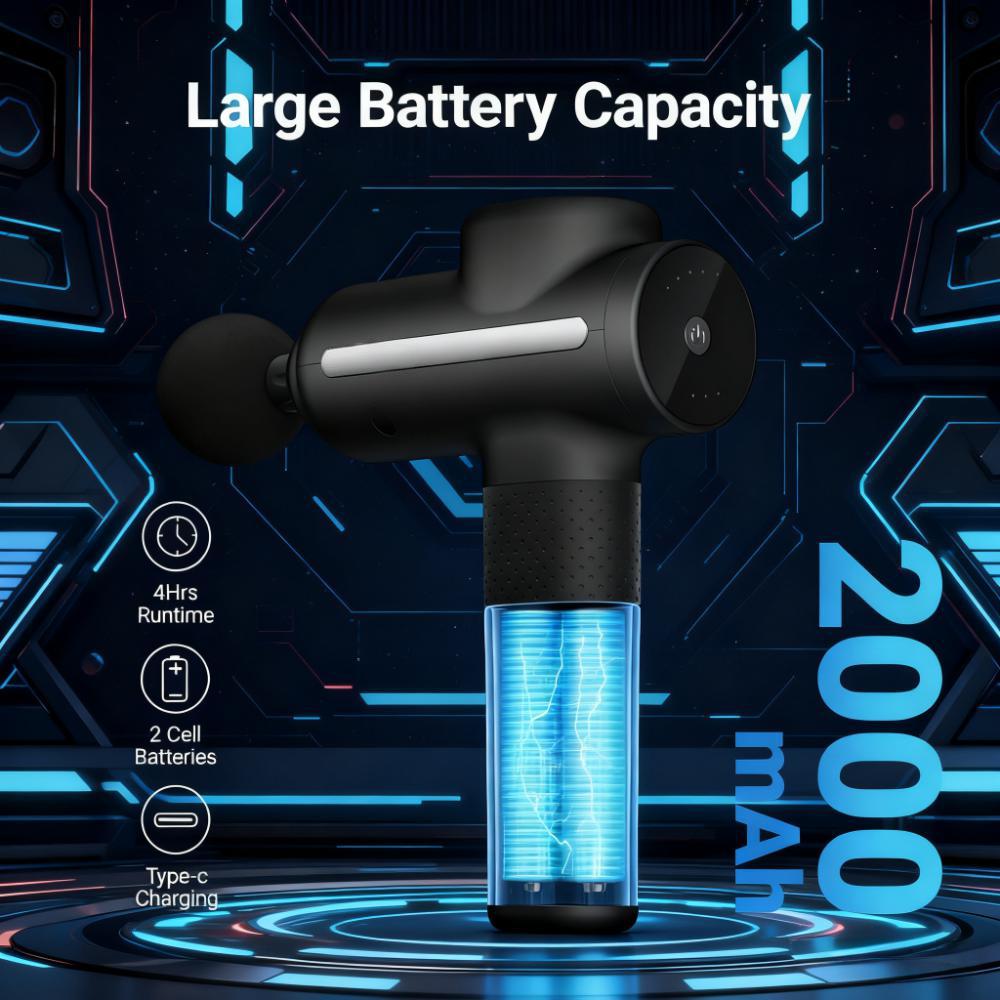 - Features a powerful brushless motor with 5 speeds (up to 3200 RPM) for effective percussion massage.